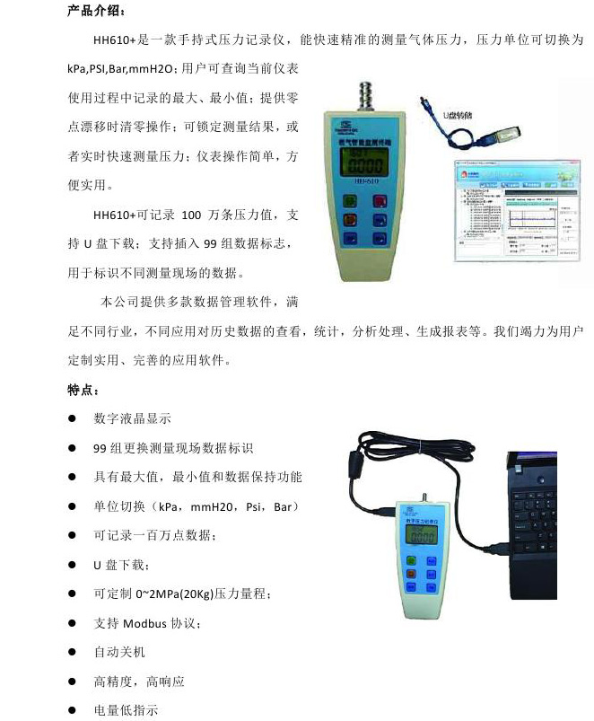 HH610+手持式壓力記錄儀