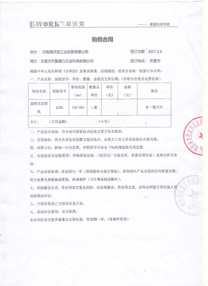 2017年?yáng)|營(yíng)市齊魯通力五金機(jī)電有限公司合作業(yè)績(jī)