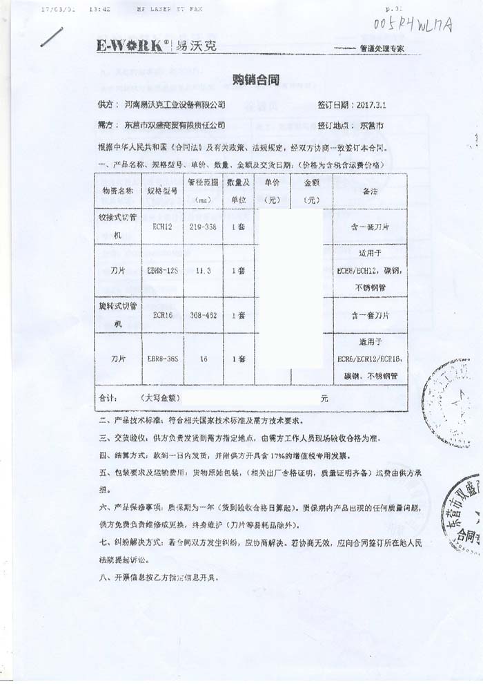 2017年東營市雙盛商貿(mào)有限責(zé)任公司合作業(yè)績