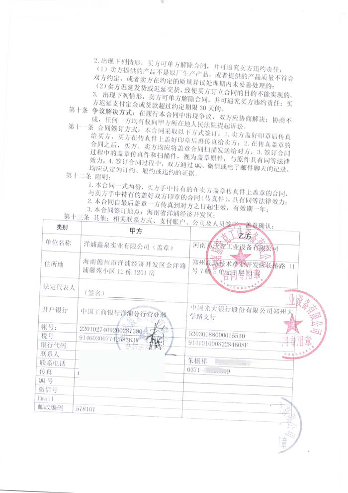 2017年洋浦鑫泉實(shí)業(yè)有限公司合作業(yè)績(jī)