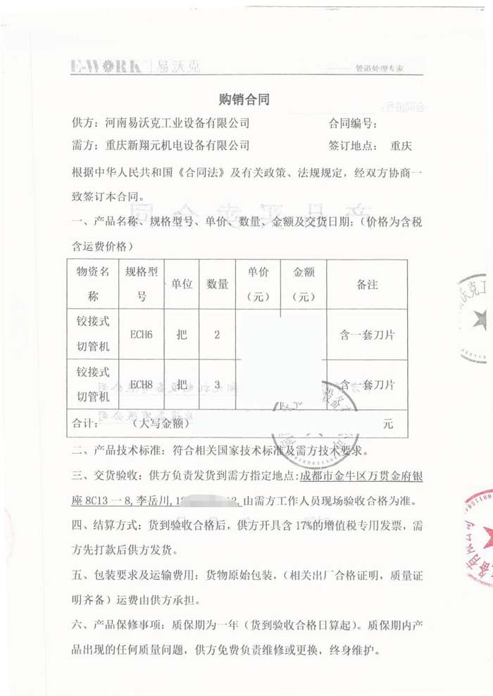 2017年重慶新翔元機電設(shè)備有限公司合作業(yè)績