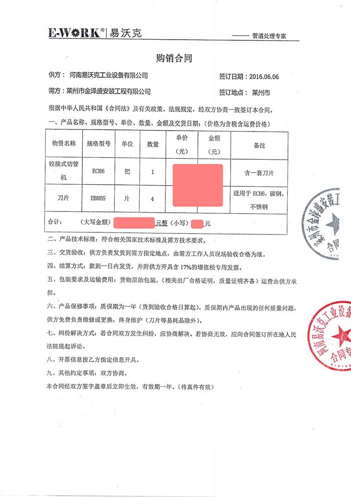 2016年萊州市金澤盛安裝工程有限公司合作業(yè)績(jī)