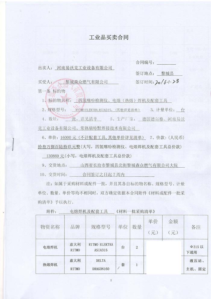 2016年山西黎城森眾燃?xì)庥邢薰竞献鳂I(yè)績(jī)